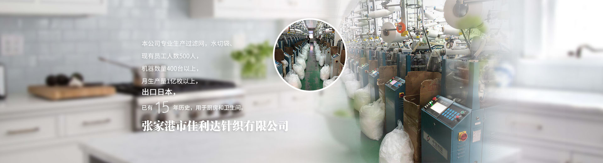 張家港市佳利達針織有限公司地處田垛里二區(qū),北依南通港,東傍上海港,與蘇錫常地區(qū)接壤,地理位置優(yōu)越,水陸交通便利。現(xiàn)有員工人數(shù)500人,機器數(shù)量400臺以上,月生產(chǎn)量1億枚以上。公司專業(yè)生產(chǎn)水切網(wǎng)、滌綸網(wǎng)袋、垃圾過濾袋、無紡布網(wǎng)袋、水槽過濾袋、水槽水切袋、不銹鋼水槽網(wǎng)、廚余過濾、廚房衛(wèi)生清潔用品等,出口日本已有15年歷史,用于廚房和衛(wèi)生間,產(chǎn)品暢銷上海、廣州、深圳、南京、蘇州、無錫、常州等全國各地。